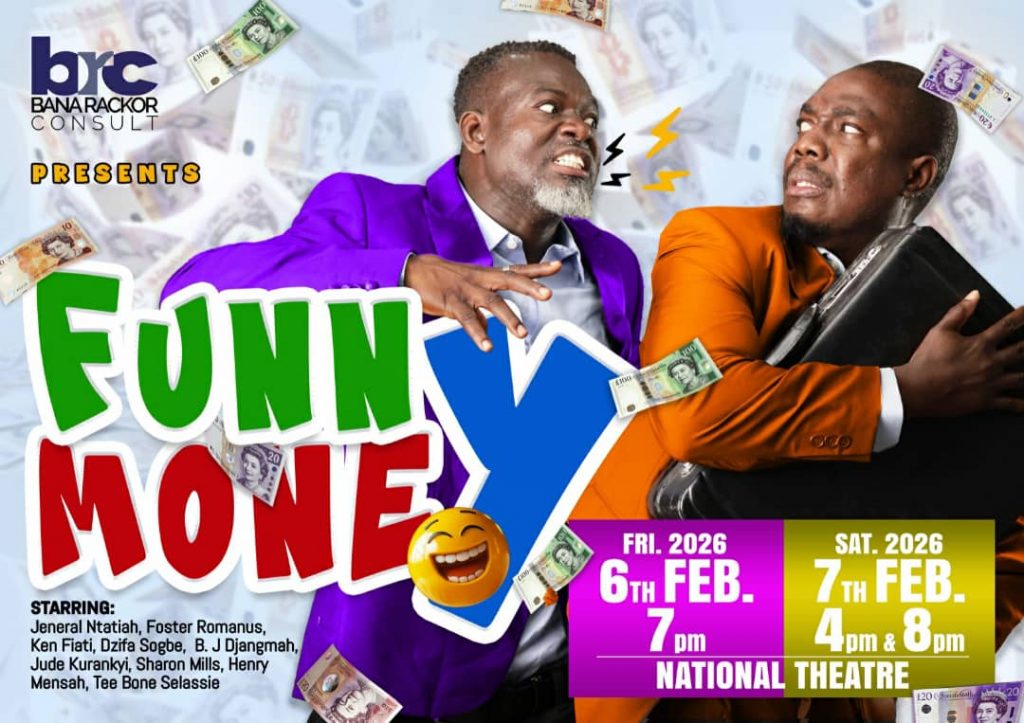 Bana Rackor Consult presents Funny Money on 12th February at the ETS Drama Studio, University of Ghana.