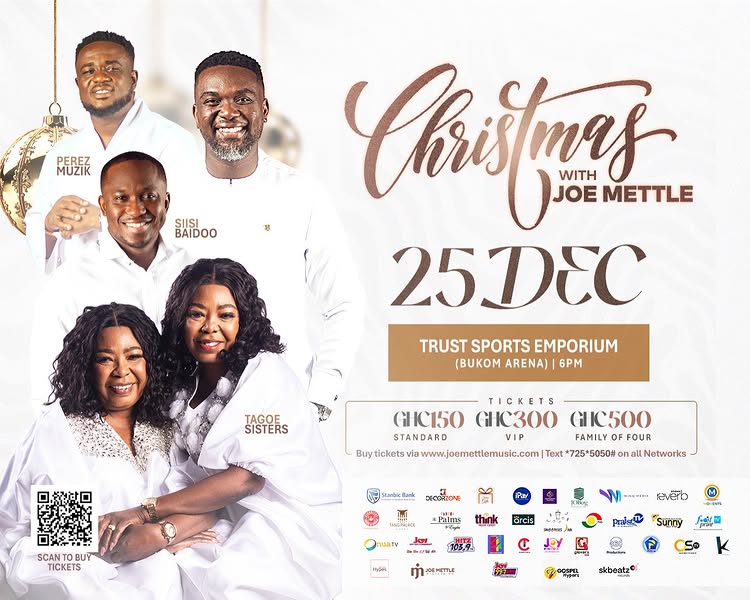 It’s that time of the year again! Come 25th of December, Joe Mettle is bringing you the ultimate Christmas experience with a different twist. Mark your calendars for Christmas with Joe Mettle & LoveGift! Live at TRUST SPORTS EMPORIUM (Bukom Arena) Tickets now available at www.joemettlemusic.com or by dialing *725*5050# Standard: GH₵ 150 VIP: GH₵...