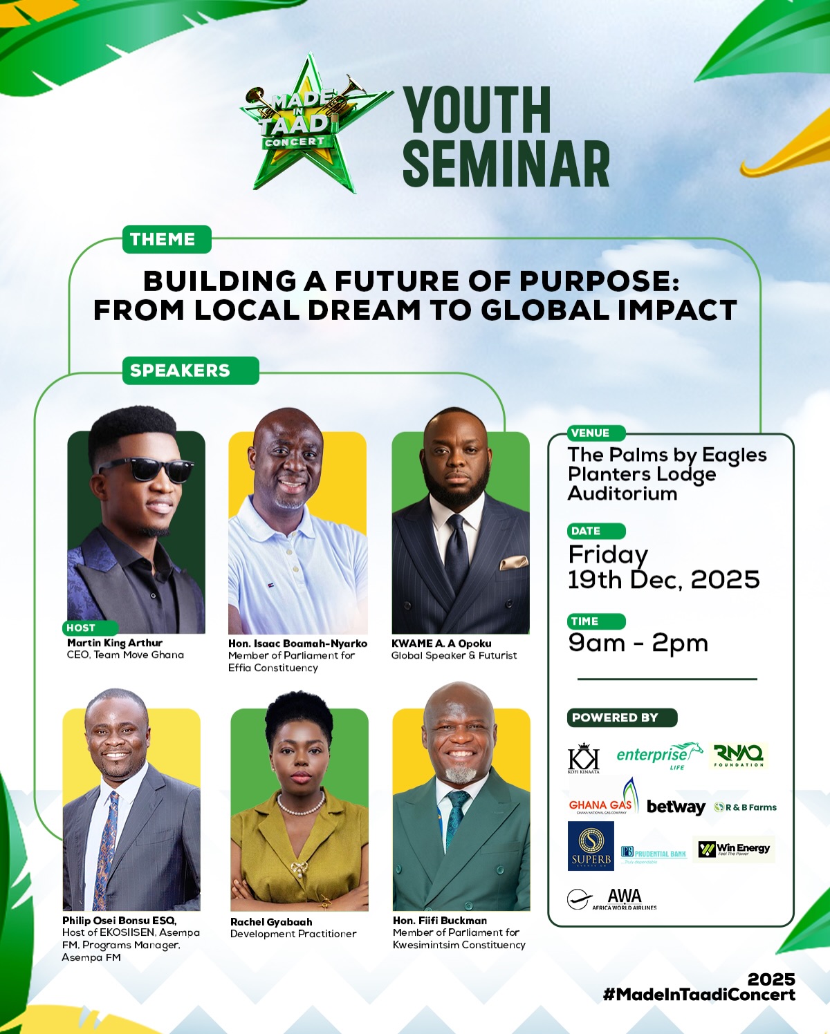 Ahead of the Made in Taadi concert, the Made in Taadi Youth Seminar 2025 is here to inspire, equip, and ignite purpose in the next generation. Under the theme “Building a Future of Purpose: From Local Dream to Global Impact,” this power-packed seminar brings together distinguished leaders, speakers and change-makers to shape minds and transform....